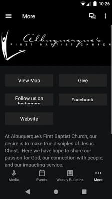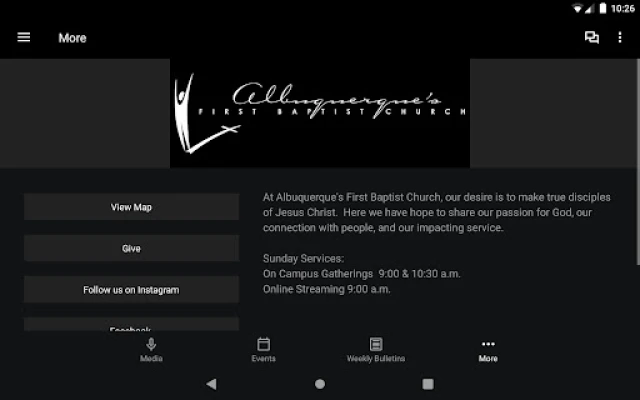Albuquerque's First Baptist Church App on suunniteltu vahvistamaan sidettäsi seurakunnan yhteisöön ja sen monipuoliseen toimintaan. Jotta voit hyödyntää kaikkia ominaisuuksia saumattomasti, vakaa WiFi-internetyhteys on suositeltavaa. Lisätietoja Albuquerque's First Baptist Church -seurakunnan työtavoista ja tarjoamista mahdollisuuksista löytyy osoitteesta www.fbcabq.com.