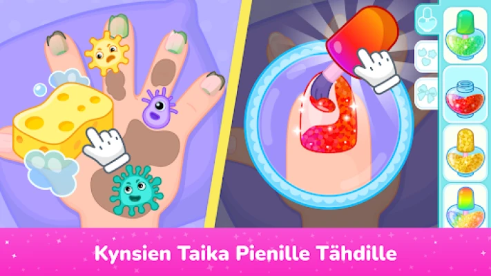 Maailmassa, jossa oppiminen ja ilo kulkevat saumattomasti käsi kädessä, tämä kauneussalongipeli kutsuu lapsesi sukeltamaan hauskaan ja kehittävään seikkailuun. Kynsisalongin värikkäistä lakkavaihtoehdoista rauhoittaviin spa-hoitoihin, ja aina hiusmuotoiluun ja meikkaukseen asti – tekeminen ei lopu. Tässä sovelluksessa lapsi voi vapaasti kehittää uteliaisuutta ja itseilmaisua, löytäen iloa jokaisesta vuorovaikutuksesta. Se on portti luovuuteen ja itsenäiseen leikkiin, joka yhdistää suositut teemat yhdeksi iloiseksi ja opettavaiseksi kokemukseksi.